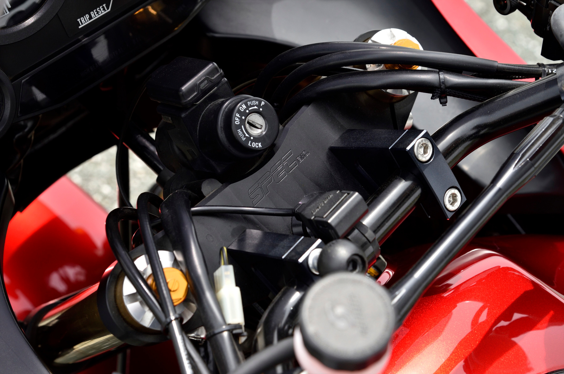 ![]() スパイス製バックステップ ¥38,500 ![]() タンデムステップ装着 ※色はステップに準ずる ¥38,500 エンジン廻り ![]() Φ37シルバーボディ ¥220,000 ![]() 998cc化 ¥275,000 ![]() シフトシャフト サポート装着 ¥27,500 フレーム廻り ![]() ケツ上げキット装着 ¥33,000 ![]() 強化エンジン マウント ¥16,500 ![]() フレームスライダー ブラック ¥13,200 電装廻り ![]() ヘッドライト LED化 ¥16,500 ![]() ETC本体&アンテナ別体式 ¥49,500 ![]() スマホホルダー 樹脂タイプ ¥24,200 ![]() スマホホルダー アルミタイプ ¥55,000 外装 ![]() カーボンミラー ¥44,000 ![]() カーボンウインカー ブラケット ¥33,000 ![]() カーボンヒールガード ¥11,000