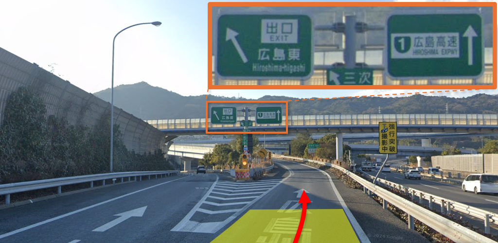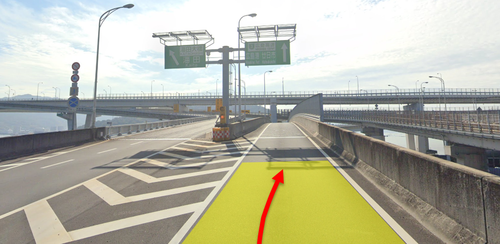 広島高速へと接続しているので、右車線へ♪